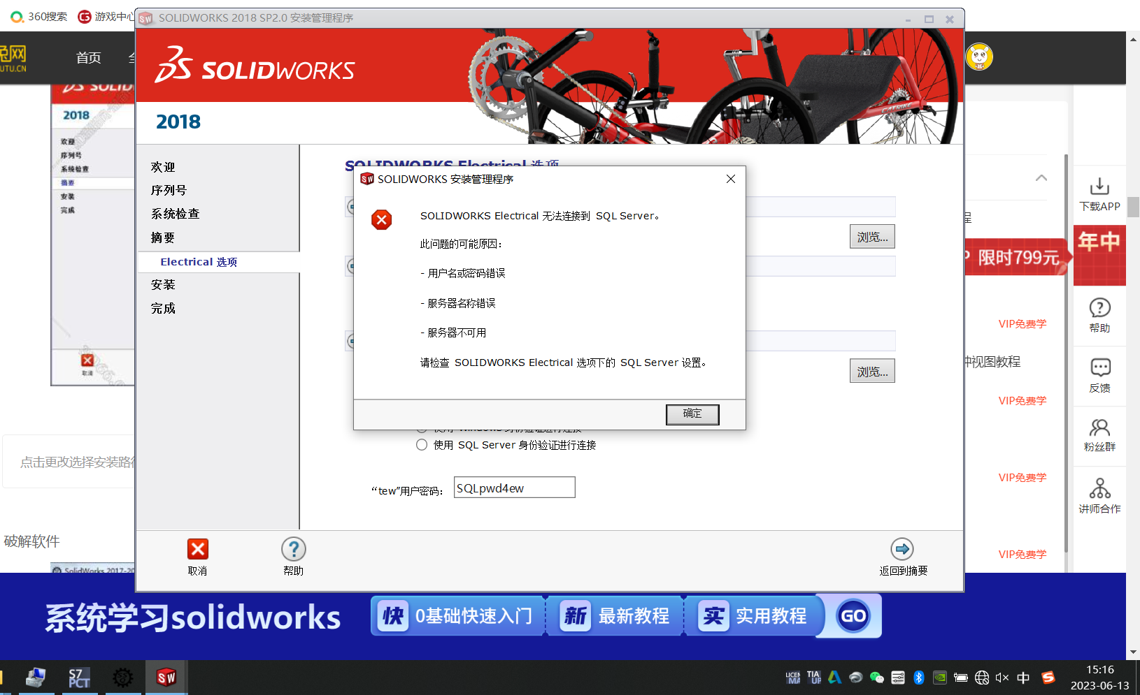 这个版本不支持win7哦!你可以换一个低版本的SW安装,或者更新你的电脑系统