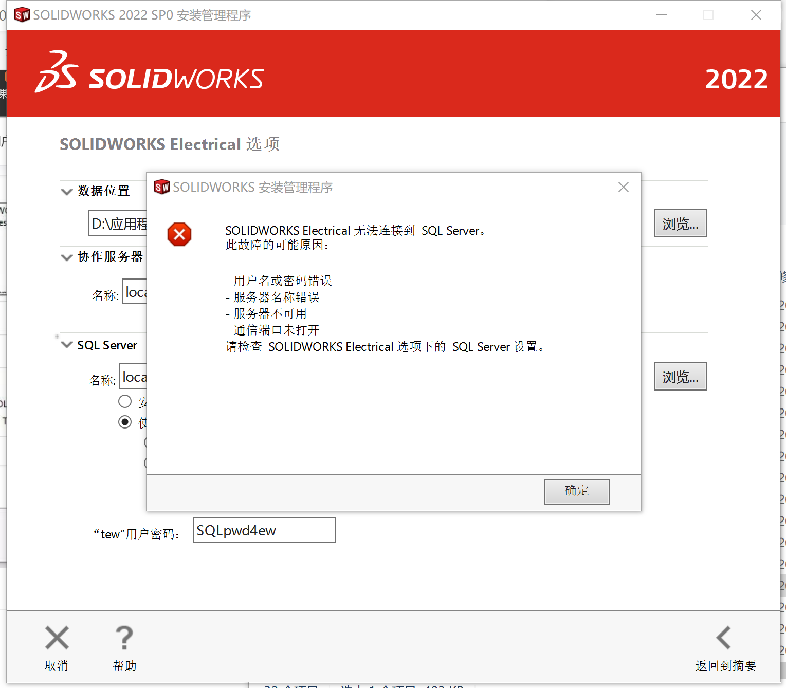 如果SOLIDWORKS安装管理程序在安装过程中提示Microsoft SQL Server安装失败,可能是由于以下原因导致的: